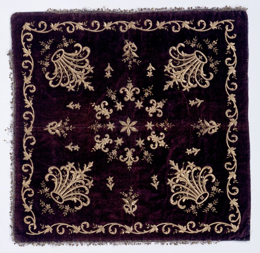 بقچه حمام و میقوه عروس از جنس مخمل ابریشم دوزی اواخر قرن 19، ازمیر، اهدایی جین