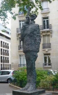 مجسمه دریفوس با شمشیر شکسته در دست، در بولوار راسپیل در پاریس در کنار