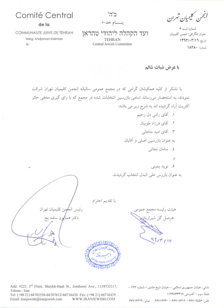 گزارش مجمع عمومی عادی انجمن کلیمیان تهران