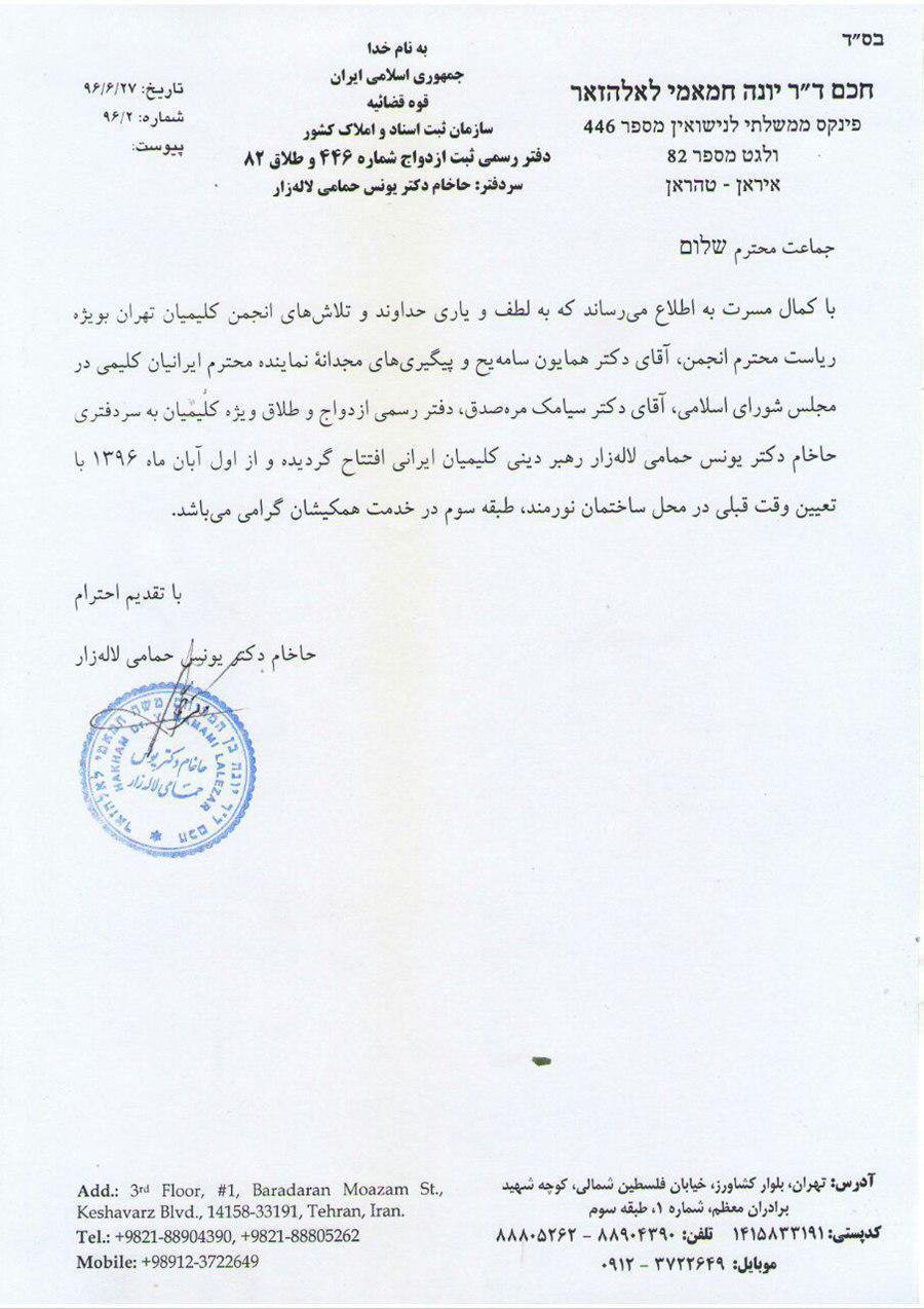 باز گشایی دفتر ازدواج و طلاق دکتر حمامی