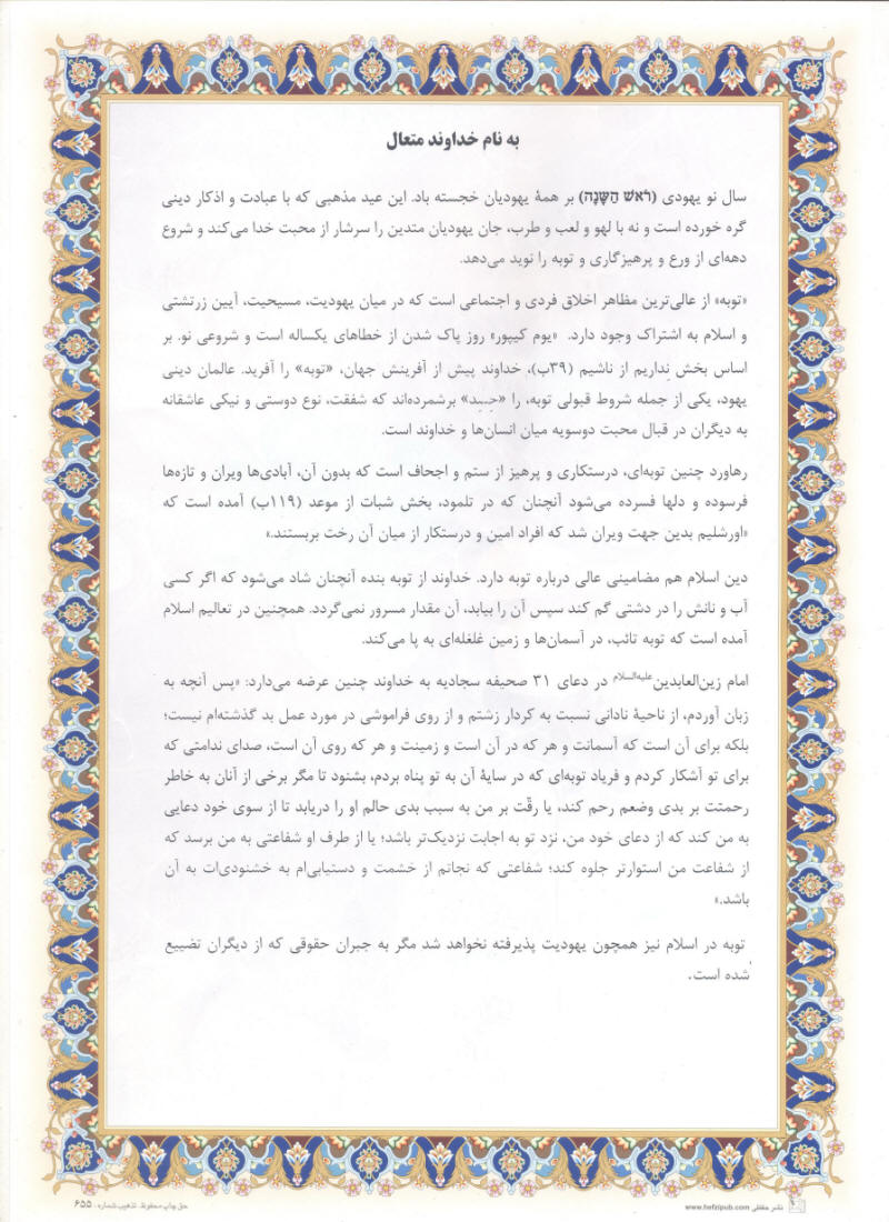 در پایان این دیدار متن پیام حوزه علمیه تهران در تبریک سال نو عبری قرائت شد.