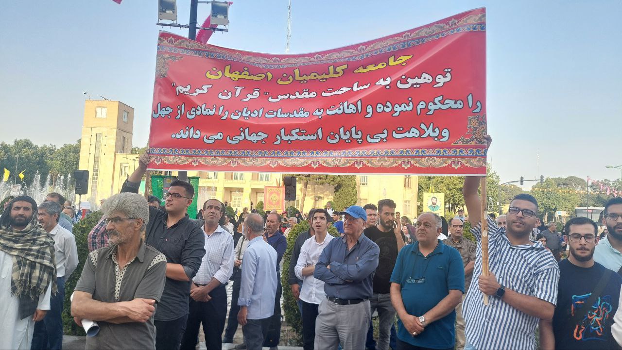 روز ۱۴تیر ماه ۱۴۰۲ کلیمیان اصفهان همگام با سایر شهروندان در تظاهراتی، هر نوع توهین به مقدسات ادیان را محکوم نمودند.