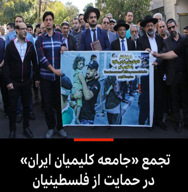 روز 8 آبان کلیمیان تهران در محل کنیسه ی یوسف آباد تجمع اعتراضی نسبت به جنایات رژیم صهیونیستی برگزار کردند.