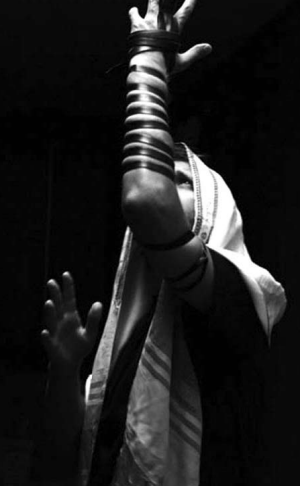 نفش بسته و گره پشت تفیلین سر که به شکل ד است و انگشت وسطی که بعد از بستن بند